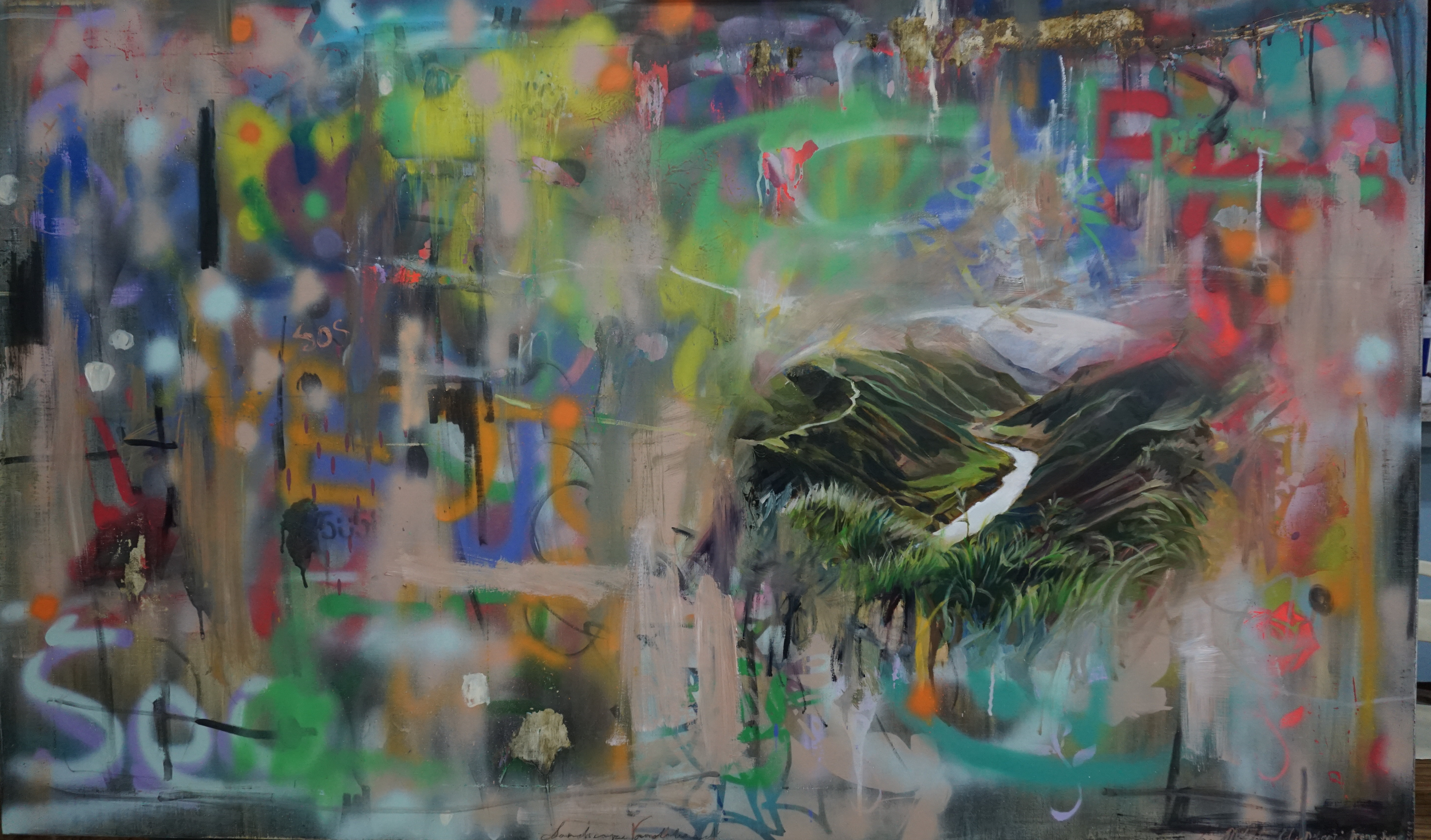 Synthetic Landscape 2020, Oil and Mixed Media on Korean Table, SOLD